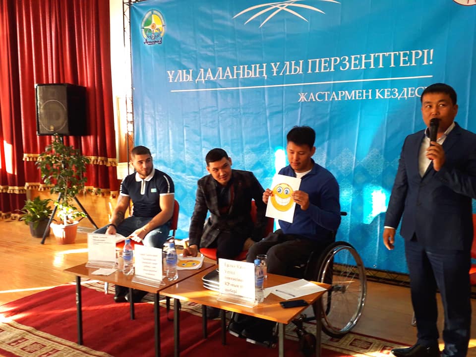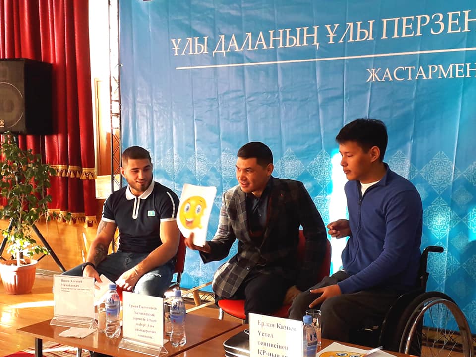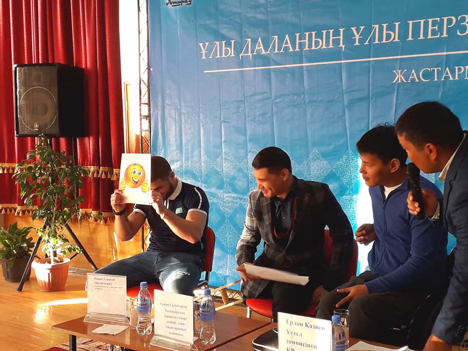 Кездесу барысында спортшылар оқушыларға спортпен айналысатын болса қандай жағдайларға назар аудару, салауатты өмір салтын ұстану қажеттігін және өздері барған әлем қалалары мен халқының ерекшелігі туралы айтып, «Жетістік кілті — табандылықта», – дей отырып, алға қойған мақсаттары ауқымды екенін де жасырмады. Кейін Үстел теннисінен КР-ның спорт шебері Ерлан Казиев шеберлік ойынын көрсетті. Кеш соңында қонақтар ең үздік сұрақ қойған оқушыларға кітап ұсынып қолтаңба жазып тілектерін білдірді.