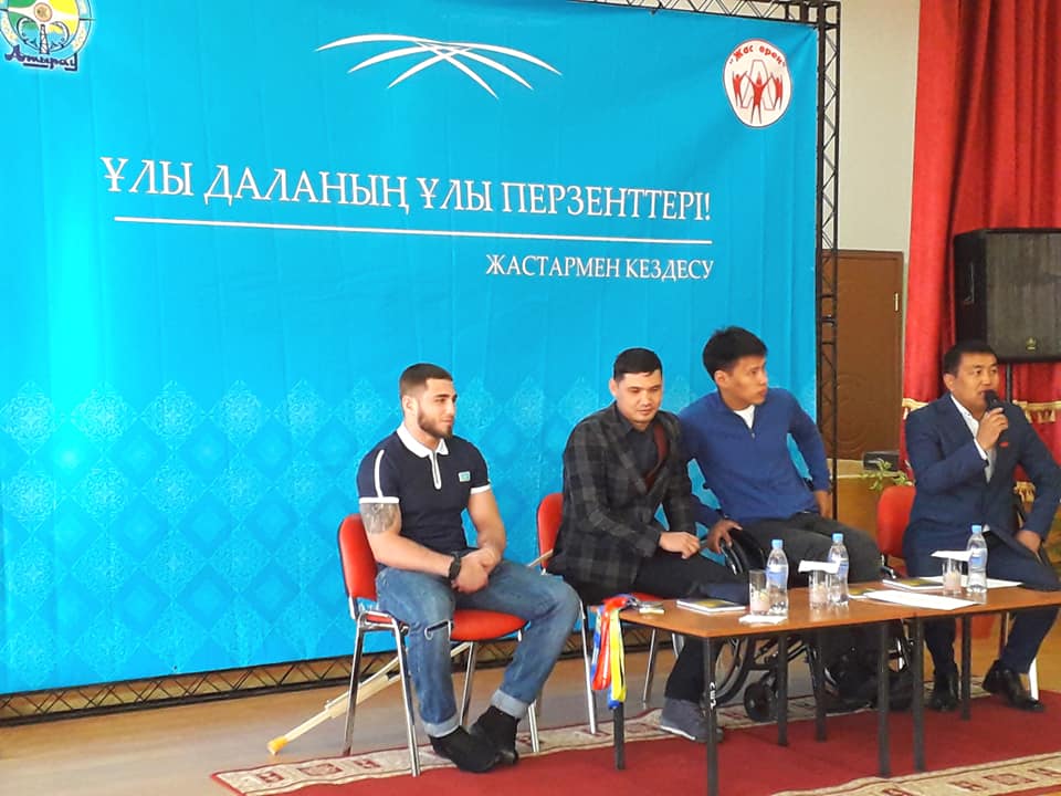 Атап айтсақ Ержан Салімгереев Халықаралық дәрежедегі спорт шебері;Азия ойындарының чемпионы, Ерлан Казиев Үстел теннисінен ҚР-ның спорт шебері,Ишин Алексей Михайлович Пауэрлифтингтен Азия және әлем чемпионы. Кездесу еркін әңгімелесу түрінде өткізіліп, оқушыларымыз сұрақтар қоя отырып, спортшылардың өмірі туралы көптеген қызықтарды, жеңіске қалай қолжеткізгендігі туралы білді.