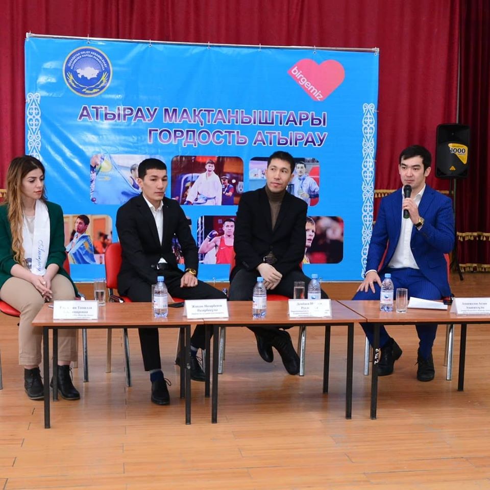 "Атырау мақтаныштары" атты мотивациялық кездесуі. Бұл шара #2 Ж.Нәжімеденов пен Атырау облысы ҚХА "Жаңғыру жолы" жастар қозғалысы және Атырау облыстық Спорт басқармасымен бірлесіп Волонтерлік жыл аясында өткізілді.