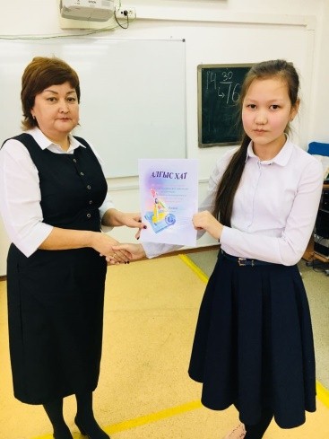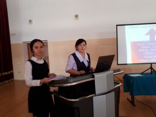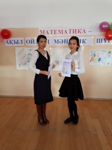 19 января 2018 года учителя математики Жалекеева З.Г. и Рскалиев Т.К. провели завершающее внеклассное мероприятие среди учащихся 7-8 классов. Нужно отметить, что данное мероприятие было подготовлено учителями, однако ведущими были ученики старших 9-х классов. Участвовали четыре команды. Соревнование состояло из 7 туров. Задания подобраны с тематикой и логического характера. Участники показывали свои знания и умения применять их в различных ситуациях. В мероприятии также участвовали и болельщики, приносили баллы в копилку своих одноклассников. Члены жюри подошли к выставлению оценок объективно.