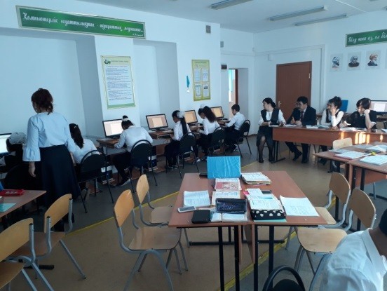 15 января 2018 года учитель информатики Айтжанова А.Т. провела в 6 г классе урок по теме «Маркированные и нумерованные списки». На уроке применяла презентации, видеоролик с сайта Билимлэнд для объяснения новой темы, были озвучены ответы на вопросы. Ученики работали на компьютере, выполняли задания учителя. Конец урока завершился игрой Кохум, где все сидящие могли проверить свои знания по данной теме. И провела обратную связь и формативное оценивание. Айгерим Тулегеновна прошли курсы по обучению на трех языках, получила сертификат. И поэтому на уроке учитель использовала слова на английском языке, словарь и общие фразы.