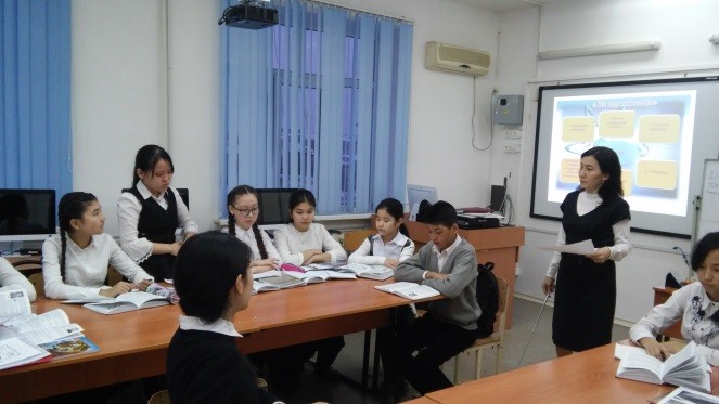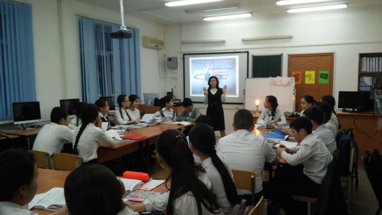 16 января 2018 года учитель физики Габдуллина Л.К. в 8 классе провела урок по теме «Электрическая цепь». Учащиеся активно участвовали в процессе урока, составляли цепь, рисовали схемы цепи условными обозначениями, работали по предложенным на презентации заданиями. Лариса К также сертифицированный учитель по обучению на трех языках. И на уроке пользовалась терминологией на английском и казахском языках. Урок завершился рефлексией и оцениванием учащихся.