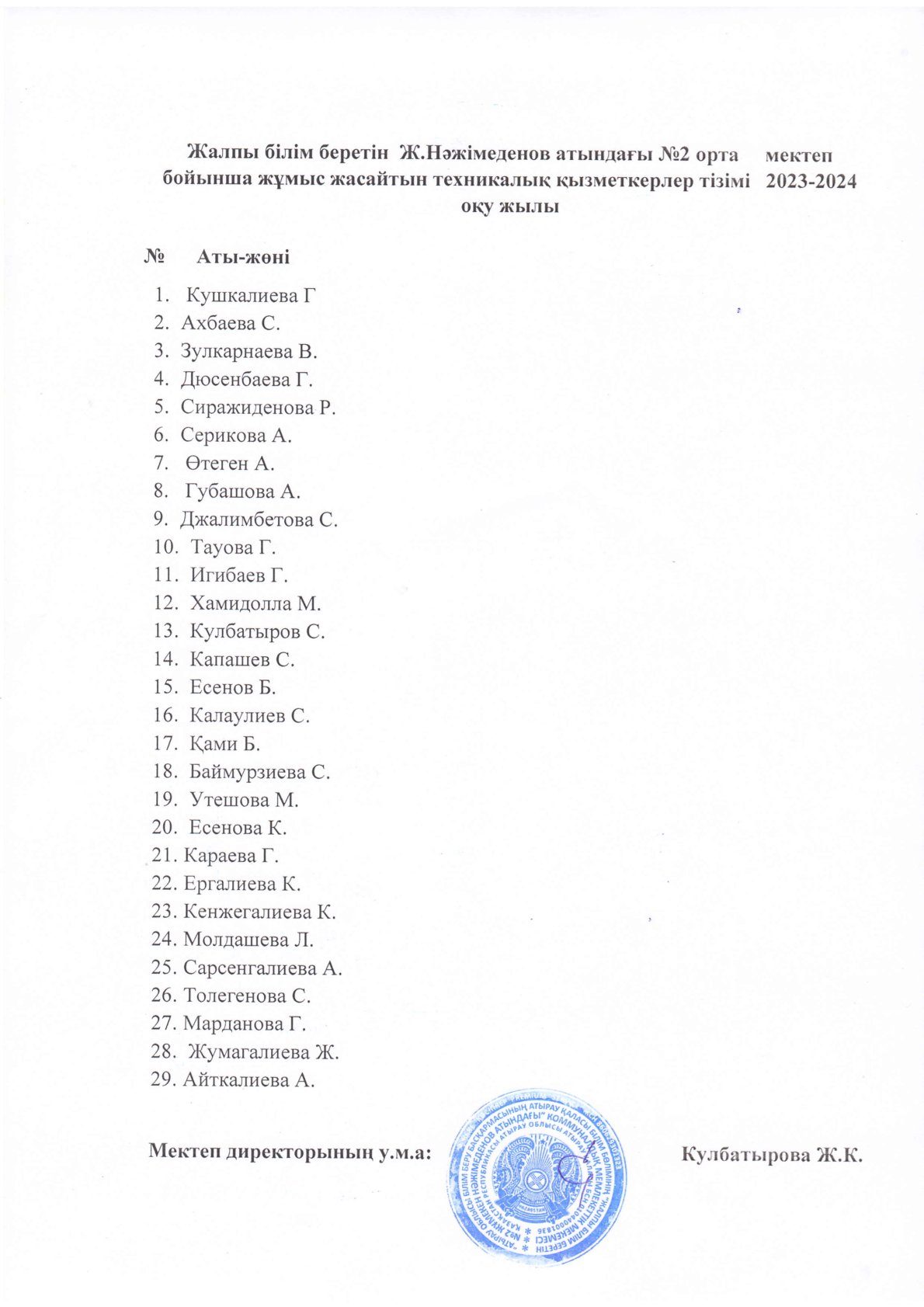 Қызметкерлер тізімі 2023 - 2024 ж